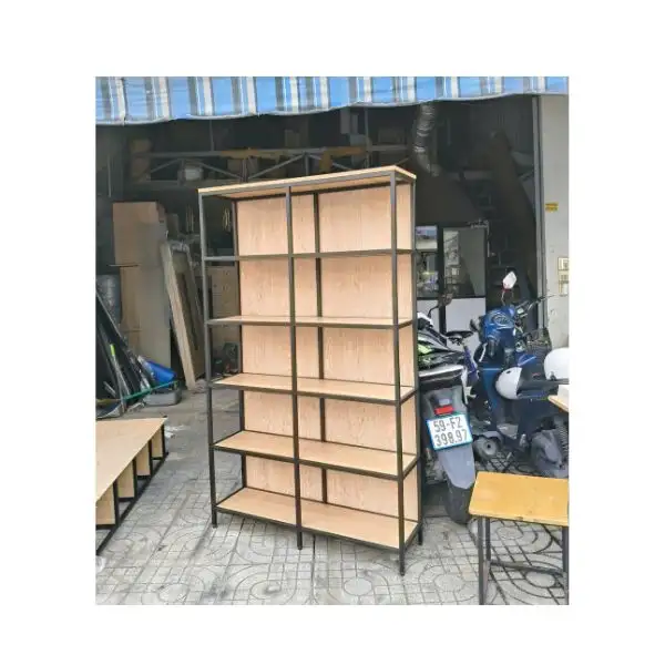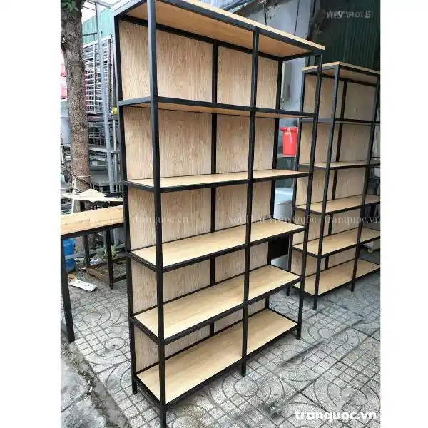 Hình ảnh chi tiết kệ gỗ khung sắt trưng bày SP32128